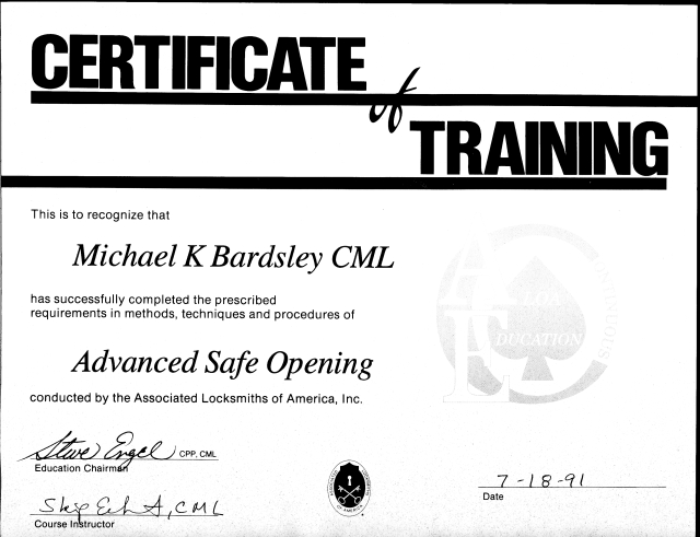 With 45 Years Local Experience, Bardsley Safe and Lock Specializes